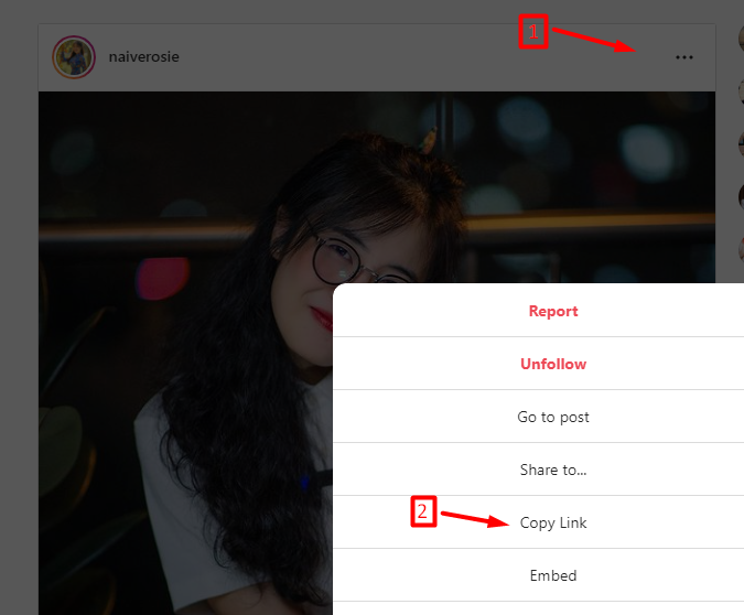 Step 1: open your phone and go to the Instagram app, select the photo to download and click Copy link