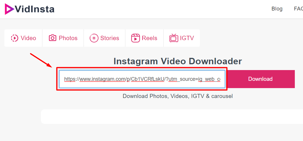 Step 5: Paste the reels link you copied into the reels downloader and click download.