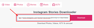 After the story is changed to the stories interface, go to the Instagram app or the website instagram.com to copy the link of the story you want to download and paste it into Vidinsta.